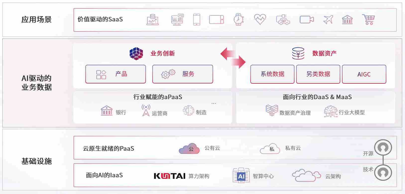 数字时代,,,,围绕企业数字化转型的关键要素,,manbet数码开创性的提出数云融合战略和技术体系框架,,着力在云原生、、、数字原生、、、AI原生和信创产业上架构产品和服务能力,,为处在不同数字化转型阶段的快消零售、、、汽车、、、、金融、、医疗、、、政企、、、教育、、运营商等行业客户提供泛在的敏捷IT能力和融合的数据驱动能力,,,构建跨界融合创新的数字业务场景和新业务模式,,助力企业级客户建立面向未来的核心能力和竞争优势,,全面推动社会的数字化、、智能化转型升级。。。。